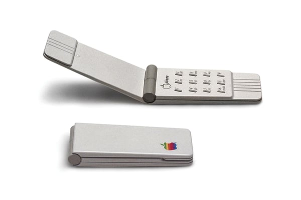 Mobiltelefone waren in den Achtzigerjahren noch halbe Telefonzellen. Wie unpraktisch, dachte sich schon damals das Apple-Design-Team - und entwarf 1983 etwa diese frühe Version eines Klapp-Handys.
