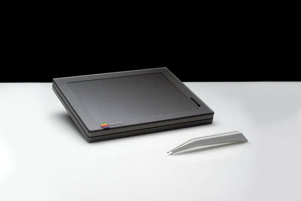 Eine frühe Vision eines Tablet-Macs. Dieses Design stammt von 1982. Die Bedienung sollte über einen großen, klobigen Eingabestift funktionieren.