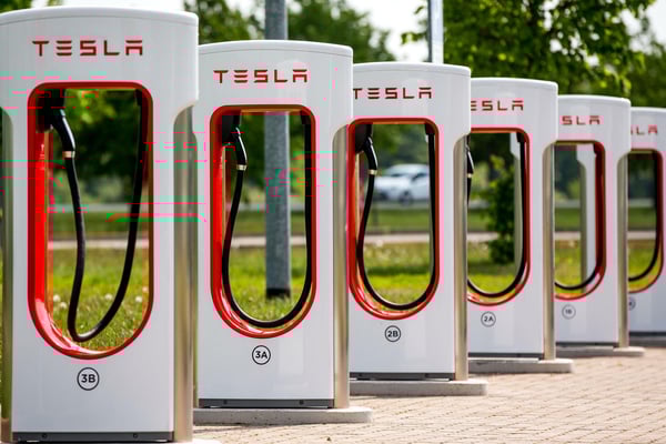 Schnelllader: Schon vier Tesla Supercharger bringen einen Ortsnetztrafo an seine Grenzen.