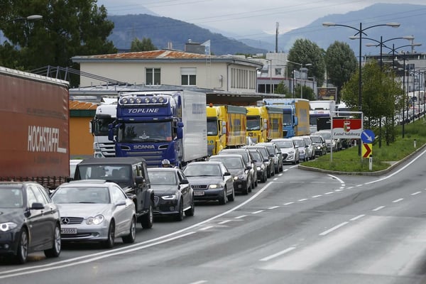 Stau bei Salzburg: Auch im Nachbarland sind E-Autos noch eine Seltenheit. Bisher sind 2,6 Prozent der Autos auf Österreichs Straßen batteriebetrieben. Pläne, Verbrennungsmotoren zu verbieten, gibt es bislang nicht. Doch die österreichische Regierung stellt einige Vorteile für den E-Auto-Kauf in Aussicht: Es gibt nicht nur Subventionen beim Kauf und Steuererleichterung bei Kfz- und Mehrwertsteuer, sondern auch Anreize wie freies Parken und die Benutzung von Bus- und Taxispuren.