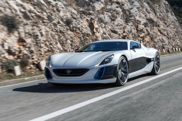 Rund eine Million Euro verlangt die kroatische Firma Rimac für ihr Hypercar Concept One. In seiner jüngsten Ausbaustufe leistet der Stromer mächtige 900 kW/1224 PS und 1800 Newtonmeter Drehmoment, was eine Sprintzeit aus dem Stand auf 100 km/h in 2,5 Sekunden erlaubt. Die Höchstgeschwindigkeit von abgeregelten 300 km/h knackt der Balkan-Bolide nach nur 14 Sekunden.