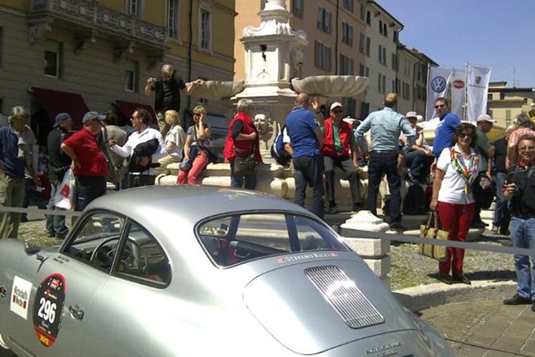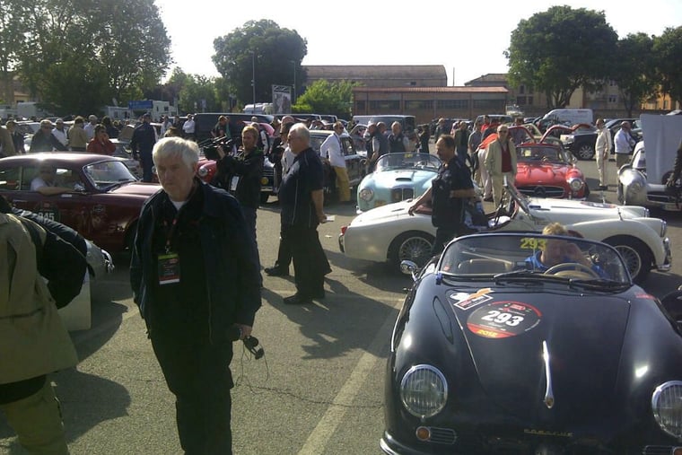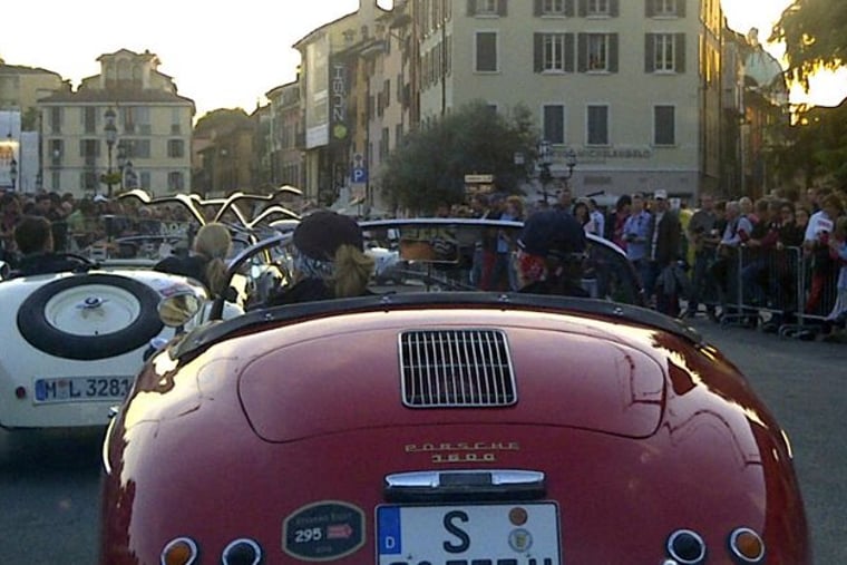 ++Sonntagmorgen: Zwei lange Tage und eine Nacht auf engem Raum, Heinz-Gerd Bode und ich als Team: Einer fährt, der andere navigiert im Wechsel quer durch Städte, Landschaften, gefühlte 1000 Kreisverkehre und zusammen 1600 Kilometer. Die Welt kann so groß sein, und Entfernungen waren so gewaltig ohne Autobahnen. Die Mille führt ausschließlich über Landstraßen; dazwischen jagen wir in Modena den kleinen Porsche über die Rennstrecke, in der sonst die Ferraris vom Werk nebenan die Reifen abradieren. Aber keine Stadt wird umfahren: Überall warten Tausende begeisterte Zuschauer, ihr Applaus und ihre Großzügigkeit vertreibt die Müdigkeit, wir sind Helden der Landstraße. Morgen beginnt wieder der nüchterne Büroalltag. Und Respekt vor einem genialen Konstrukteur, der vor 60 Jahren ein leichtes Auto gebaut hat, das sich komfortabel fährt und agil um die Kurven läuft; ohne Mucken und Zucken. Eher ein Vorbild für eine Zeit überdimensionierter, überkonformisierter schwerer Autos. Das letzte Bier auf Euch....