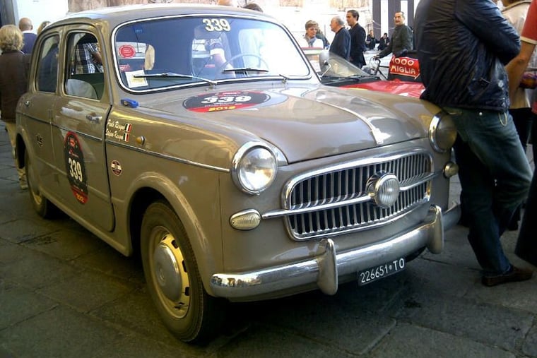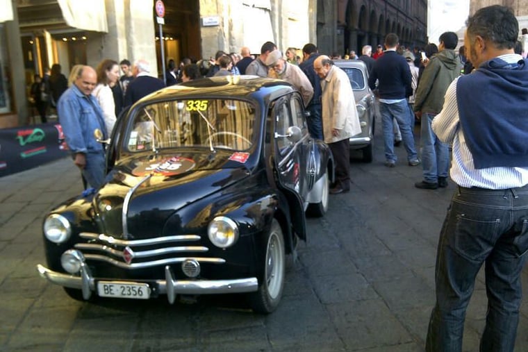 Jean Rédélé hat mit diesem Renault-Zwerg dreimal die Mille und LeMans gewonnen - und dann Renault Alpine gegründet: eine Legende. Dahinter ein Fiat 1100 aus den 60ern der wie die schnellen Topolinos in den 50ern das Rennen gemacht hat: der Traum unserer Normalo-Eltern damals.