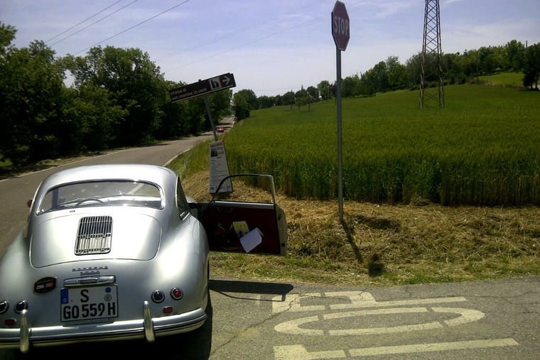 ++ Startvorbereitungen: Da ist er. Der Porsche 356, ich darf ihn fahren, den ersten, den seltenen, den vergötterten Ur-Porsche. 1000 Meilen auf der Mille Miglia, von Brescia nach Rom und zurück. Ok, nicht selber am Steuer, aber immerhin als Ko-Pilot werde ich Porsche-Pressechef Hans-Gerd Bode durch Italien leiten, über Geschwindigkeitsmessstrecken und nächtliche Landstraßen, Pappelalleen entlang und durch Ravenna und Sirmione und Padua und vielen anderen, die alle sorgfältig im Roadbook aufgeführt sind, rund 1000 Seiten Italien.