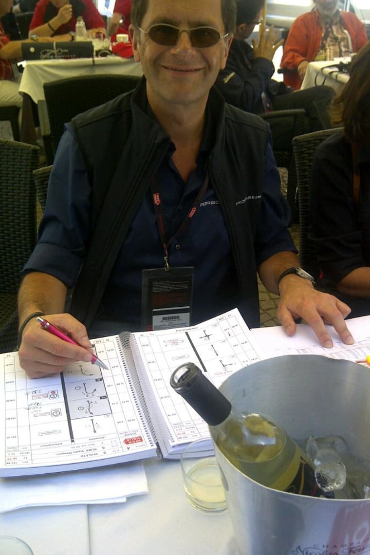 Hier zu sehen: Porsche-CEO Matthias Müller. Er durfte nur beifahren, weil er den Führerschein hat stecken lassen. Tja. Kann passieren.