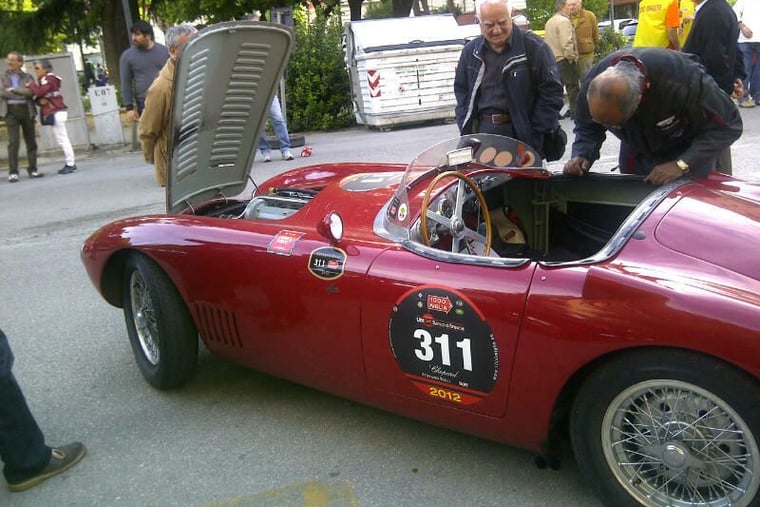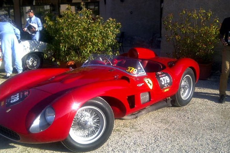 Ein Ferrari 500 TRC. Im August in Papples Beach in Kalifornien wurde so einer für 14 Millionen Dollar versteigert. Hier pappelt er übers italienische Kopfsteinpflaster.