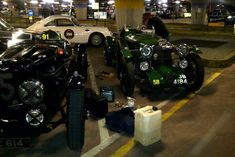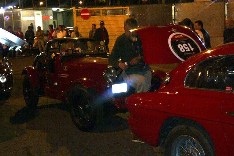 Ein MG von 1932. In der Nacht Schrauberstopp nach dem Corso durch Rom und rum um den Vatikanstaat. Startnummer 1 ist ein OM von 1930, der dem Deutschlandchef von GoldmanSachs, Alexander Dibelius gehört.