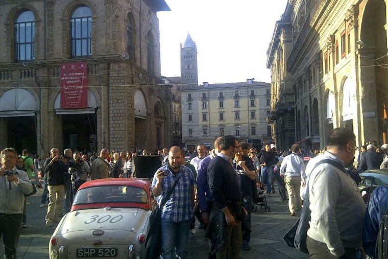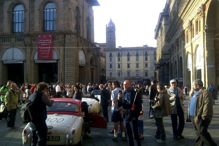 Begeisterte Menschen stoppen die Rallye in Bologna.