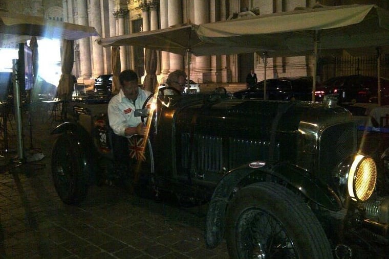 Die Vorbereitungen für die Mille Miglia laufen. Auf dem Foto ein 29er Bentley. Das modernste daran ist die Schweizer Autobahnvignette. Da gibt es keine Gnade...