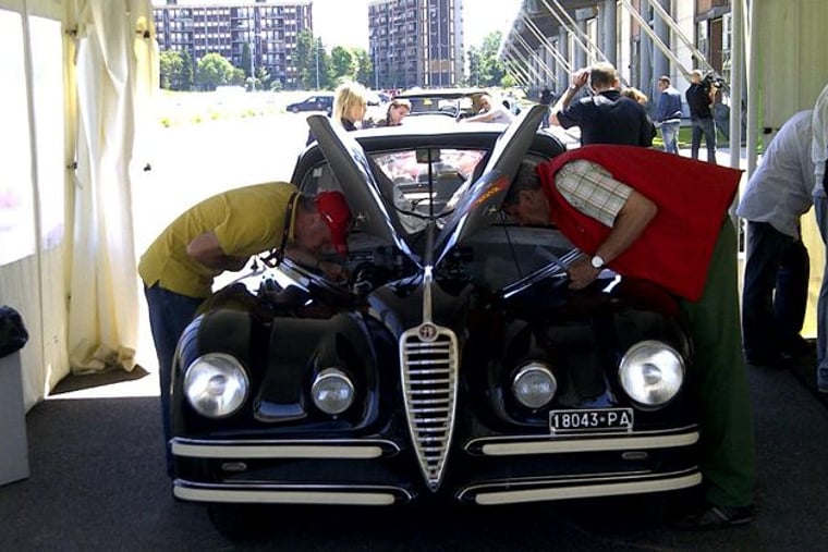 ++Donnerstag, 14 Uhr: Es ist nicht der TÜV, der die Autos auseinandernimmt, sondern die viel strengere Technikprüfung, die kontrolliert, ob der Originalzustand erhalten oder allenfalls geringfügig modifiziert ist. Teilnehmen dürfen ohnehin nur Modelle, die an den klassischen Straßenrennen in den Jahren 1927 bis 1957 bereits teilgenommen haben. Diesmal sind vor allem italienische Oldtimer billig zu erhalten, die immer die Hälfte des Feldes ausmachen. Der Grund: Das italienische Finanzamt hält alle Italo-Oldies an, und verlangt die letzte Steuererklärung. Im Zuge der Staatsschuldenkrise ist eine Luxussteuer von 3500 Euro zu entrichten, plus Deklaration der Vermögensherkunft. Also: Der Tag vor dem Start ist der Tag der Kontrolle...