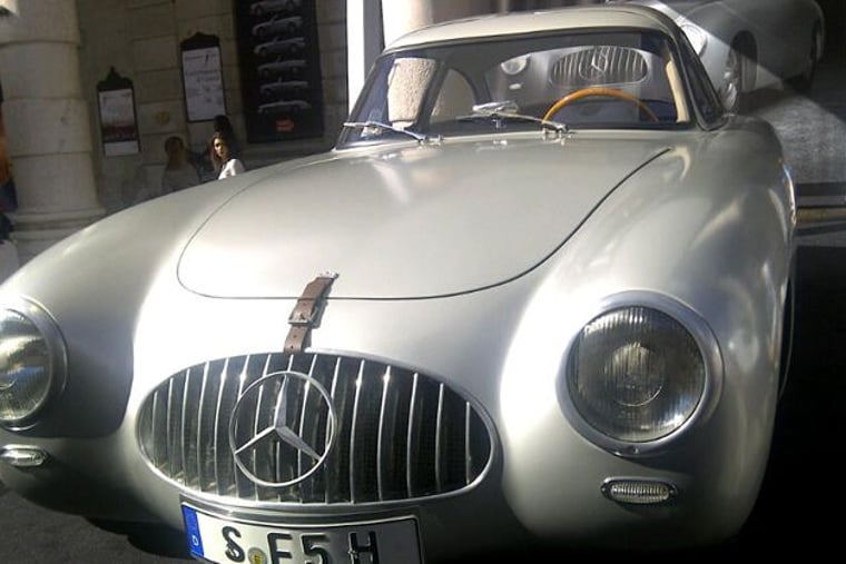 Der Flügeltüren-Mercedes, hier der Prototyp von 1952, eines der großen Kunstwerke der mobilen Ästhetik. Erwachsene Männer knien vor ihm und streicheln die Flügelmutter, mit der die Räder montiert sind.