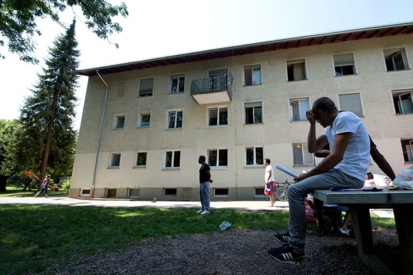Ein Flüchtling sitzt vor der Gemeinschaftsunterkunft der Asylbewerber in Bad Mergentheim auf einer Tischtennisplatte. Auch die Zuwanderungspolitik scheint die Deutschen mehr zu beschäftigen. Der begriff Asyl wurde jedenfalls 64 Prozent häufiger bei Google gesucht als noch vor vier Jahren.