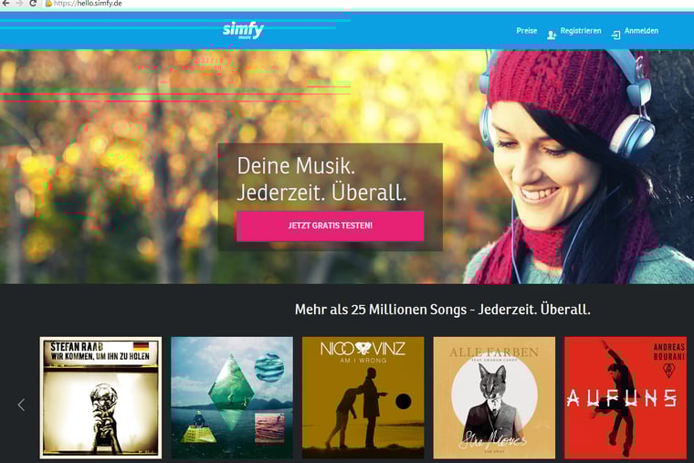 Simfy zählte einst zu den Marktführern in Deutschland. Doch das Unternehmen bekam Probleme, die Berliner Betreiberfirma wurde im Frühjahr 2015 aufgelöst. Große Plattenfirmen hatten dem Dienst die Lizenz entzogen. Simfy-Kunden werden an den Konkurrenten Deezer weitergeleitet.