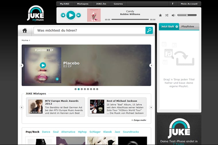 Die Dienste des aus Ingolstadt stammenden Programms Juke sind nur über iOs und Android abzurufen. Die Plattform bietet zwar ein 14-tägiges Probe-Abo, jedoch nur einen einzigen Kostentarif, in dem alle Premiumfunktionen schon enthalten sind. Durch eine zweiwöchige, kostenlose Probeanmeldung bei Juke hat der User zusätzlich Zugriff auf Mixtapes und diverse Radiosender.
