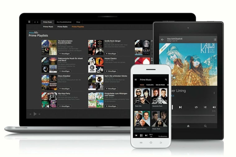 Apple mit iTunes ist inzwischen auch Amazon mit seinem Musikangebot Prime Music in Deutschland verfügbar. Prime Music ist Bestandteil der Liefer-Flatrate Amazon Prime. Dort erhalten Kunden für eine Einmal-Gebühr von 49 Euro im Jahr die kostenlose Lieferungen eines Großteils des Warenangebots nach Hause.