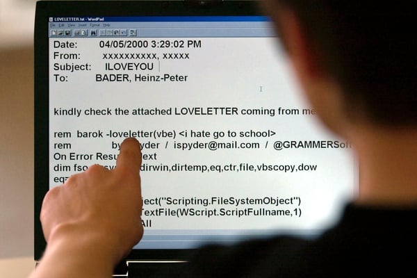 Unmittelbar nach der Jahrtausendwende flutete ein Virus aus Südostasien die digitale Welt. Ein Virus namens ILOVEYOU versendete sich von alleine, indem es auf sämtliche gespeicherte Kontakte eines Mailpostfaches zurückgriff. Die Menge an Nachrichten überlastete weltweit die Server, sodass der E-Mail-Verkehr zeitweise zum Erliegen kam. Eine zweite Version des Virus zerstörte dann sogar Dateien auf dem Rechner. Wer genau hinter dem Virus steckte, ist bis heute nicht geklärt.