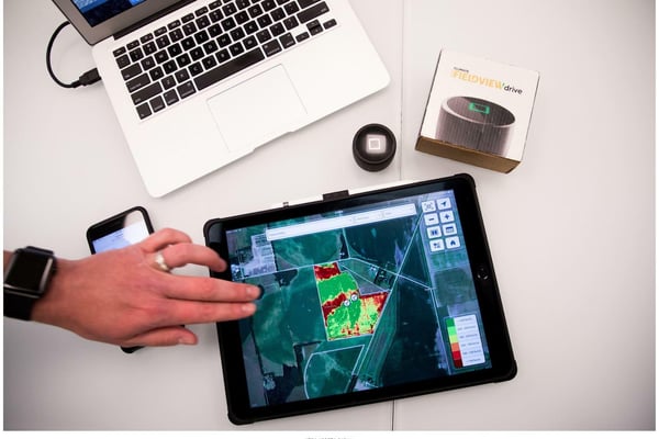 Gefahrstufe Rot: Das iPad zeigt den Umriss einer Farm in Green Valley im US-Bundesstaat Illinois. An den roten Stellen sollen die Bauern mehr Saatgut und Pflanzenschutzmittel verwenden. Von seinem Digitalprojekt verspricht sich Monsanto ein großes Geschäft. Bislang nutzen die meisten Bauern allerdings bloß die kostenlose Basisversion.