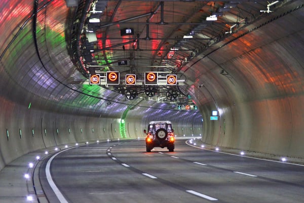 Tunnel sind teuer, und der kürzeste Weg zwischen zwei Punkten ist doch eine Gerade - warum haben Tunnel dann oft so viele Kurven? So will man dem "Tunnelblick" vorbeugen. Denn wenn wir zu lange geradeaus fahren und das Sichtfeld zudem stark eingeschränkt ist, neigen wir dazu, uns nur noch auf das Ende zu konzentrieren. Die Kurven sollen die Fahrer wach und aufmerksam halten und das Unfallrisiko so minimieren. In vielen Tunneln ist außerdem der Mittelpunkt gegenüber Ein- und Ausfahrt erhöht - so soll Wasser von starken Regenfällen schneller abfließen und sich nicht in der Mitte sammeln.