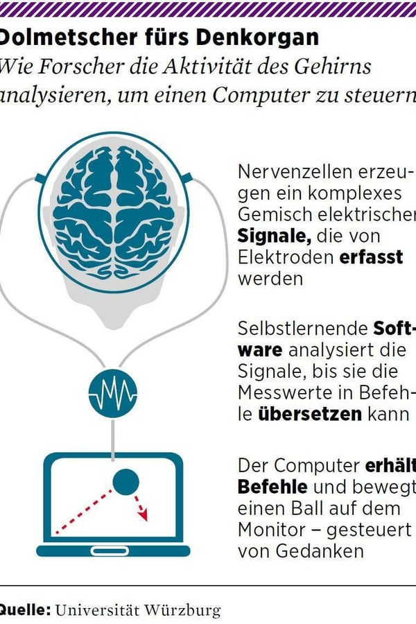 Wie Forscher die Aktivität des Gehirns analysieren, um einen Computer zu steuern (für eine vollständige Ansicht bitte anklicken).