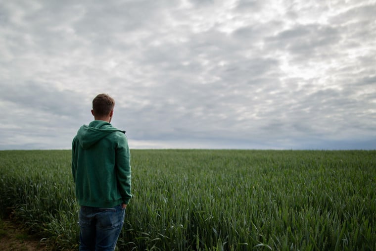 Ein Mann steht allein auf einer Wiese. Einsamkeit kann der Gesundheit schaden.