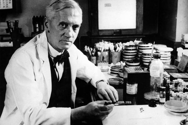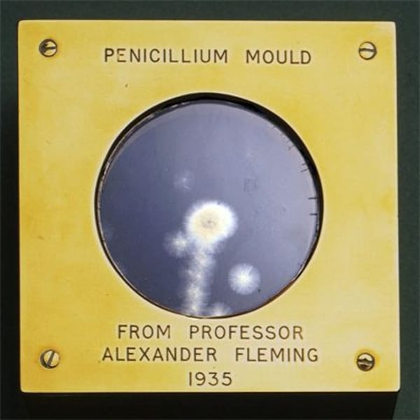 Die Entdeckung des ersten Antibiotikums begann mit einer verschimmelten Bakterienkultur. Der Mediziner Alexander Fleming forschte 1928 am St. Mary’s Hospital in London mit Staphylokokken. Eine seiner Bakterienkulturen auf Nährboden hatte er verlegt. Als er aus den Sommerferien zurückkehrte, fand er sie wieder und entdeckte am 28. September 1928, dass auf dem Nährboden ein Schimmelpilz (Penicillium notatum) wuchs und dass um diesen herum keine neuen Bakterien entstanden. Fleming untersuchte den Pilz, aber er kam nicht auf die Idee, daraus ein Medikament zu entwickeln. Das taten erst zehn Jahre später Howard W. Florey, Ernst B. Chain. Gemeinsam mit Fleming bekamen sie 1945 den Nobelpreis.