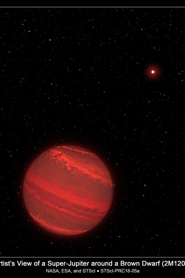 In nur rund 160 Lichtjahren Entfernung ist dieser Super-Jupiter zu finden: Wissenschaftler nennen den Planeten 2M1207b - als Super-Jupiter ist er bekannt, weil er etwa vier Mal massiver als der Jupiter ist. Ähnlich dem Jupiter, der in unsrem Sonnensystem in etwa 500 Meilen Entfernung um die Sonne kreist, zieht der Super-Jupiter in 5 Milliarden Meilen Entfernung um einen Braunen Zwerg kreist.