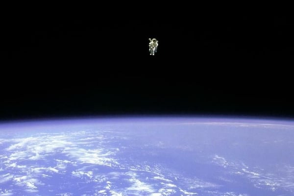 Bruce McCandless war der erste Astronaut, der sich ohne Sicherheitsleine durch das Weltall bewegt hat. Dafür trug er bereits 1984 einen Raketentornister, mit dem er sich selbständig von der Raumstation wegbewegen konnte.