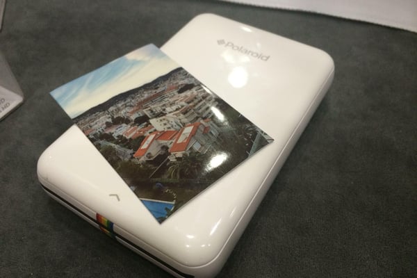 Ende März will Polarid den Drucker Zip für etwa 130 Dollar auf den Markt bringen. Er druckt mit der klassichen Polaroid-Technik ohne Farbe. Die kleinen 2x3 Zoll großen Bilder sind gleichzeitig Aufkleber. Er kann über Bluetooth mit jedem iOS oder Android Smartphone verbunden werden und wiegt etwas weniger als 450 Gramm. (Foto: I. Karabasz)