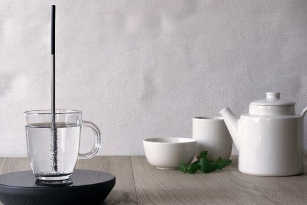 Der Tauchsieder Miito des dänischen Designstudios Chudy and Grase wärmt das Teewasser in der Tasse mit Induktionstechnik – und erhitzt keinen Tropfen zu viel.