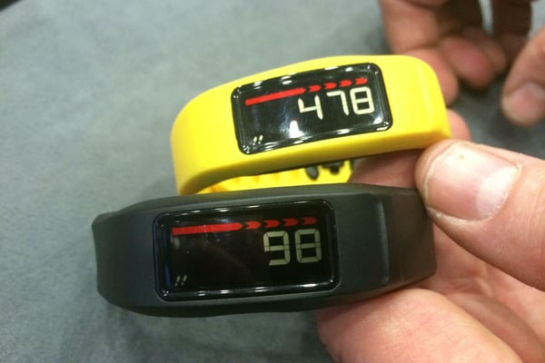 Das Schweizer Unternehmen positioniert sich als Wearable-Hesteller. Günstigstes Produkt der Reiheist das "Vivofit 2". Es zählt etwa Schritte, die Herzfrequenz und die Distanz - und hat eine Batterielaufzeit von einem Jahr. Zu haben ist es derzeit für rund 160 Euro. (Foto: I. Karabasz)
