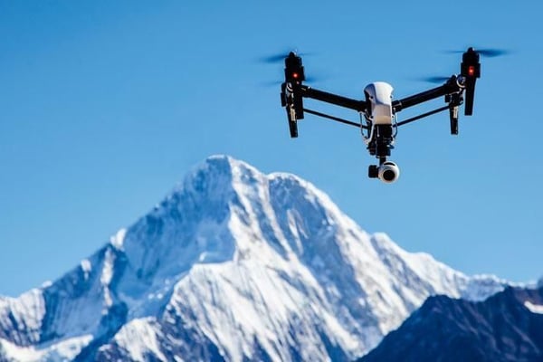 Mit vierfacher HD-Auflösung und damit ungewöhnlich scharf filmt die Videodrohne Inspire 1 des chinesischen Herstellers DJI Berge und Täler. Eine Spezialaufhängung für die Kamera gleicht jeden Wackler des Fliegers aus.