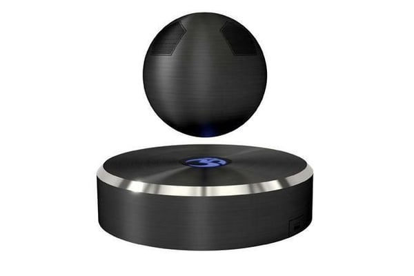 Beim Lautsprecher OM/ONE der US-Firma OM Audio liegt die Musik buchstäblich in der Luft: Ein Magnet hält die Klangkugel in der Schwebe. Lieder kommen per Bluetooth vom Handy, der Strom für den Akku ganz traditionell per Kabel.