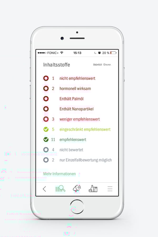 Neben Nanopartikeln zeigt die App auch weitere bedenkliche Inhaltsstoffe der Produkte an. (Grafik: Codecheck.info)