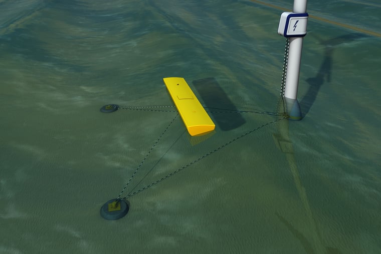 Die Wellen lassen den Schwimmkörper tanzen, sodass das Seil zum Generator mal gestrafft, mal gelockert wird. Ein mechanischer Umsetzer sorgt dafür, dass sich der Generator stets in die gleiche Richtung dreht und Strom erzeugt. Dieser Strom wird in einen nahe gelegenen Netzknoten eingespeist.