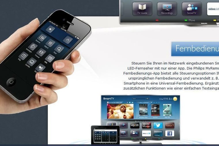 Seit 2009 lassen ich Philips SmartTVs, die onlinefähigen BD-Player und auch die Heimkinoanlagen per App fernsteuern. Auch Musik, Fotos und Videos können über ein Netzwerk mit der App angezeigt werden. Die App ist für iOS und Android erhältlich.