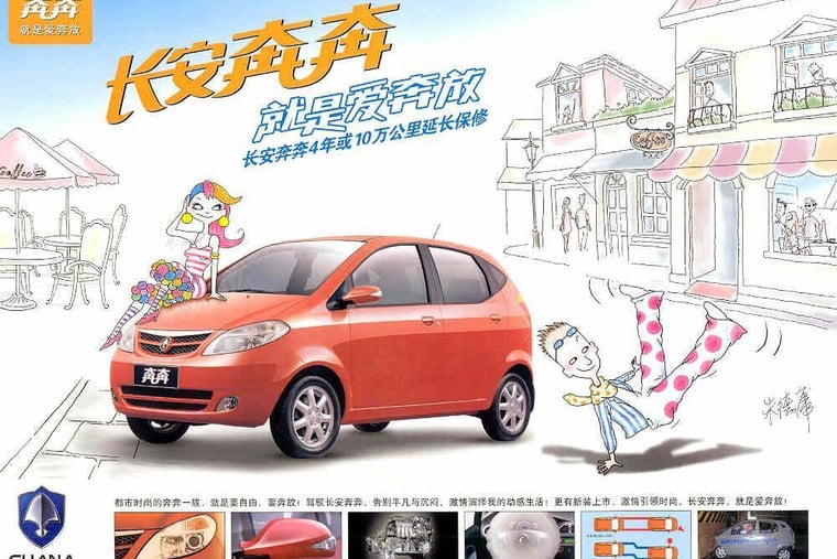 Die Werbung für den Chana Benni Mini orientiert sich an europäischen Vorbildern. Sicherheit wird auch bei den Low Cost Cars zum Verkaufsargument.