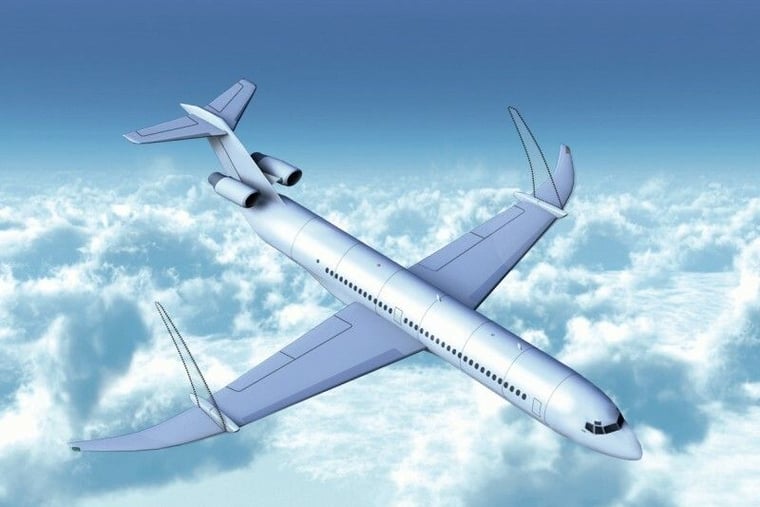 Ein möglichst leises Flugzeugmodell benötigt dünne, nach vorne gekrümmte Flügel für geringe Luftverwirbelungen. Weil die Triebwerke zudem auf dem Höhenruder sitzen, strahlt der Lärm hauptsächlich nach oben ab.