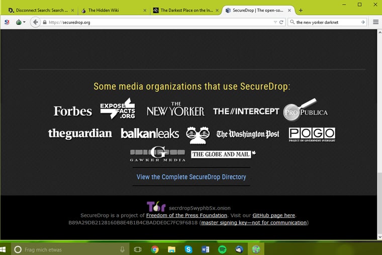 So hat auch das US-Magazin "The New Yorker" dort eine Seite mit Anleitungen für Whistleblower. In der "The New Yorker Strongbox", können mithilfe von "Secure Drop" anonym Informationen an das Magazin gesendet werden. Russische Dissidenten umgehen so die staatliche Zensur, Homosexuelle im Nahen Osten schützen sich vor dem Zugriff der Moralwächter, Whistleblower vor den Augen derer, die sie verraten.