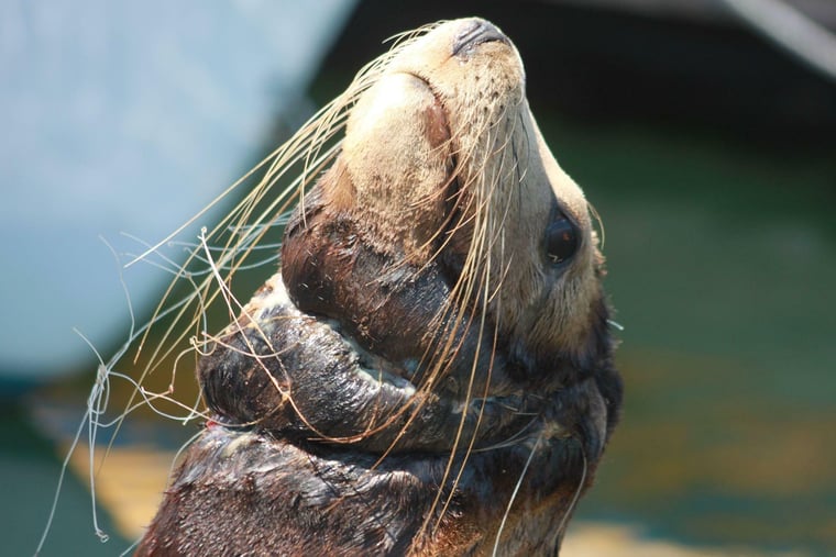 Kein seltener Bild: Eine Robbe hat sich in einem Treibnetz verfangen, USA, 2009.