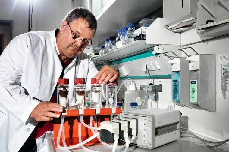 All diese Probleme ließen sich vermeiden, wenn das Gewebe wirklich leben würde, sagt Andres Hilfiker. Er leitet in Hannover den Bereich Tissue Engineering an den Leibniz Laboratorien für Biotechnologie und künstliche Organe (Lebao). Gegründet hat diese international renommierte Ideenschmiede der Organzuchtpionier und Herzchirurg Axel Haverich. Seit 2006 ist das Lebao auch Teil eines 130 Forscher starken Spitzenforschungsclusters namens Rebirth.