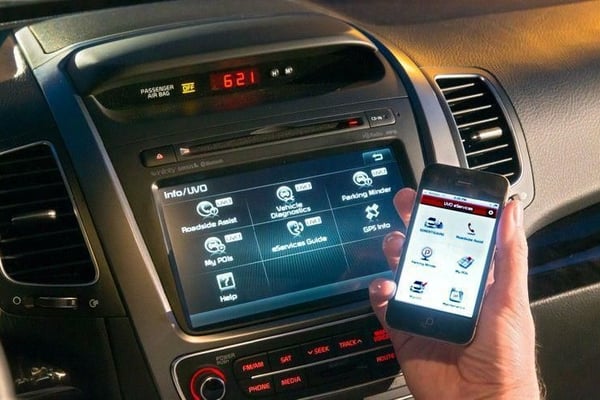 Das Infotainmentsystem von Kia lässt sich per Sprachsteuerung und Touch steuern. Die erste Variante des Systems entwickelten die Koreaner gemeinsam mit Microsoft. Die aktuelle Version setzt auch auf mobile Dienste und baut auf Googles Betriebssystem Android auf. Dadurch kann das System zum Beispiel auf die Karten und Informationen der Plattformen Google-Maps und Google-Places zugreifen. Steuern lässt es sich sich zusätzlich über Android- und Apple-Smartphones.