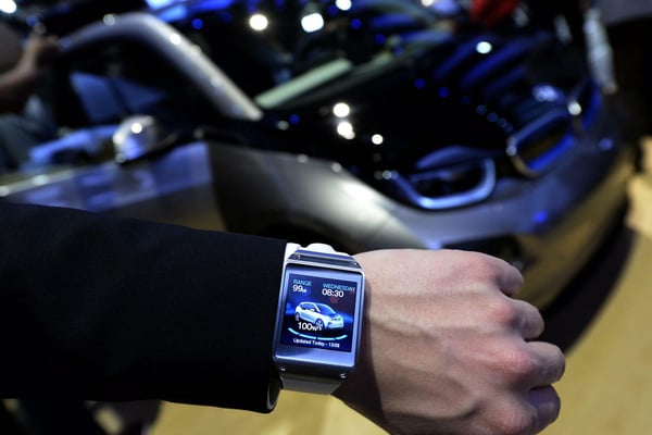 Außerdem setzt auch Mercedes auf eine Datenuhr. Der Autobauer unterstützt den Smartwatch-Hersteller Pebble und ließ eine auf das hauseigene Infotainment abgestimmte Datenuhr entwickeln. Über die Uhr lassen sich der Reifendruck und die Tankfüllung überprüfen, noch ehe der Fahrer überhaupt in das Auto eingestiegen ist.
