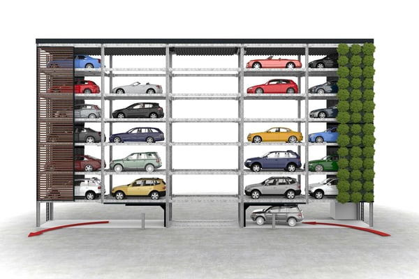 Neu an diesem Konzept ist der Kombinutzen für die Logistik: Dem Parkhausroboter ist es egal, ob er ein Auto oder eine Palette vollautomatisch vom Eingang weg zum Lagerplatz befördert. Er macht beides zentralgesteuert - und schafft damit auch stadtnahe Lagerfläche. Auf Wunsch kann der Roboter gleich noch den Akku von Elektroautos lagern.