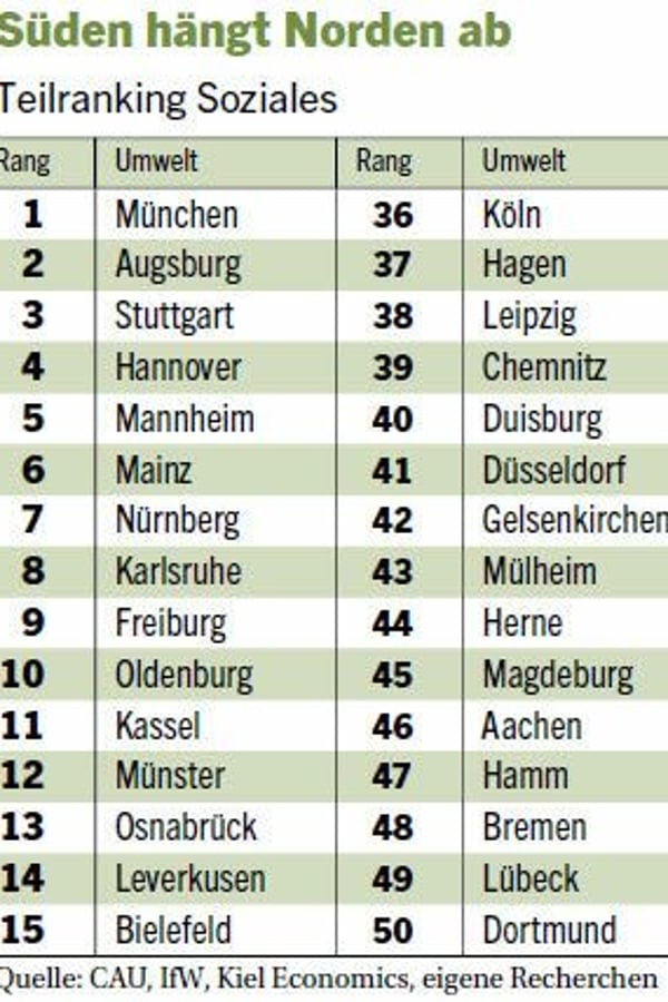 Süden hängt Norden ab. Teilranking Soziales