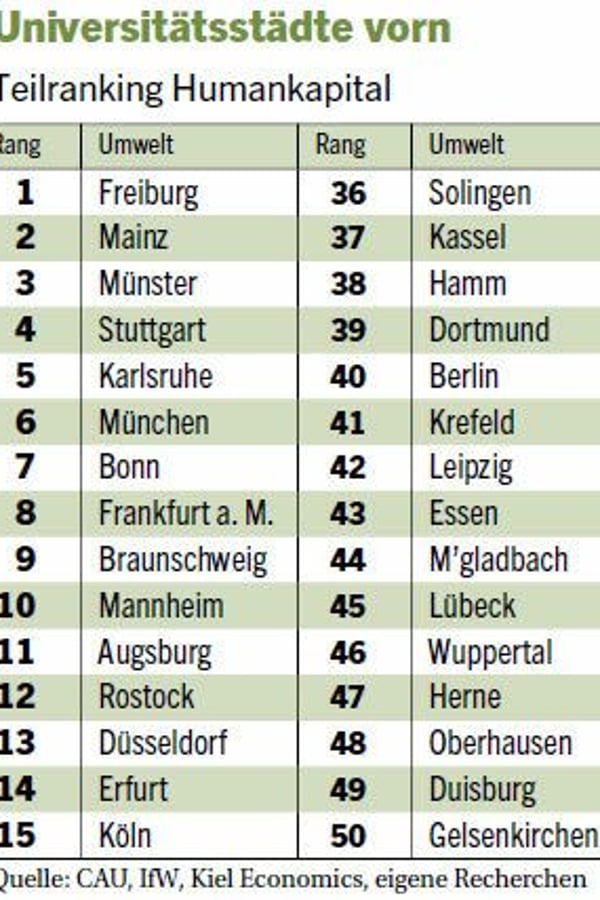 Universitätsstädte vorn. Teilranking Humankapital