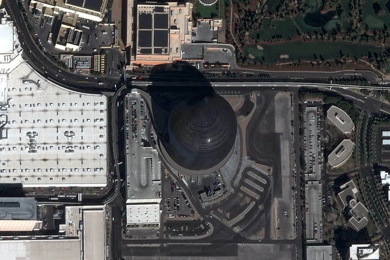 Das Gebäude ist mit 112 Meter Höhe und 157 Meter Breite der größte kugelförmige Bau der Welt. Vom Spatenstich bis zur Eröffnung vergingen fünf Jahre. Exklusive Satellitenbilder von LiveEO zeigen, wie das imposante Bauwerk entstanden ist. Vergangenen September spielten U2 als erster Act in dem Veranstaltungsort mit fast 19.000 Sitzplätzen. Kostenpunkt des Projektes: 2,3 Milliarden US-Dollar.