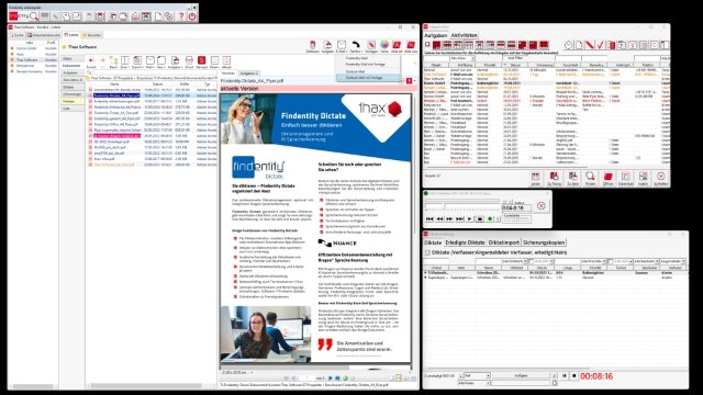 Das Berliner Unternehmen Thax Software blickt auf eine 25-jährige Geschichte in der Entwicklung innovativer Büromanagementlösungen zurück. Seit den Anfängen mit einem RFID-System zur Aktensuche hat sich Thax Software als ein führender Anbieter praxisgerechter Technologien etabliert. Neben der Findentity-Software bietet das Unternehmen ein umfassendes Leistungspaket an, das Spracherkennungslizenzen, Diktiertechnik, Installation, Schulung und Support umfasst – alles aus einer Hand.Diese langjährige Expertise spiegelt sich in einer breiten und zufriedenen Kundenbasis wider. Die Diktat-Workflowsoftware wird unter anderem von der Justiz Nordrhein-Westfalen an ca. 17.000 Arbeitsplätzen eingesetzt. Ob im medizinischen Bereich, in der Industrie, in Verbänden, in Kanzleien, Justiz, Polizei oder öffentlicher Verwaltung: Thax Software liefert individuell passende Lösungen für unterschiedlichste Anforderungen.