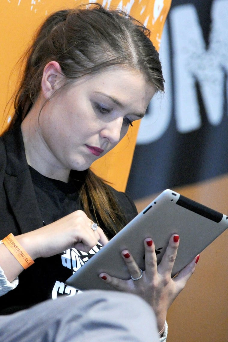 Julia Schramm während des Bundesparteitags der Piratenpartei in der Holstenhalle in Neumünster.