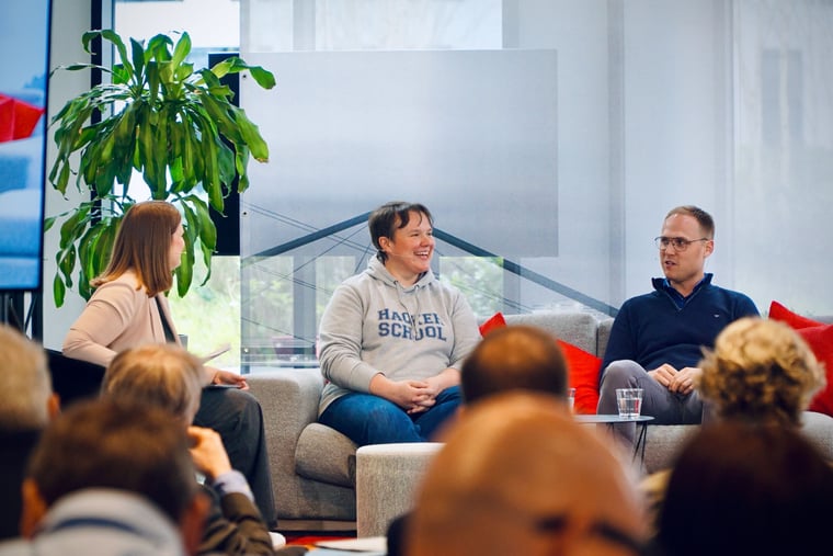 Julia Freudenberg und Timo Stark diskutierten beim Cyberprotection Day der WirtschaftsWoche über den Umgang mit Fehlern. Die Geschäftsführerin der Hacker School und der Cyber Security Engineer sind sich einig, dass der Kulturwandel schon bei den Kleinsten in Deutschland anfangen muss.