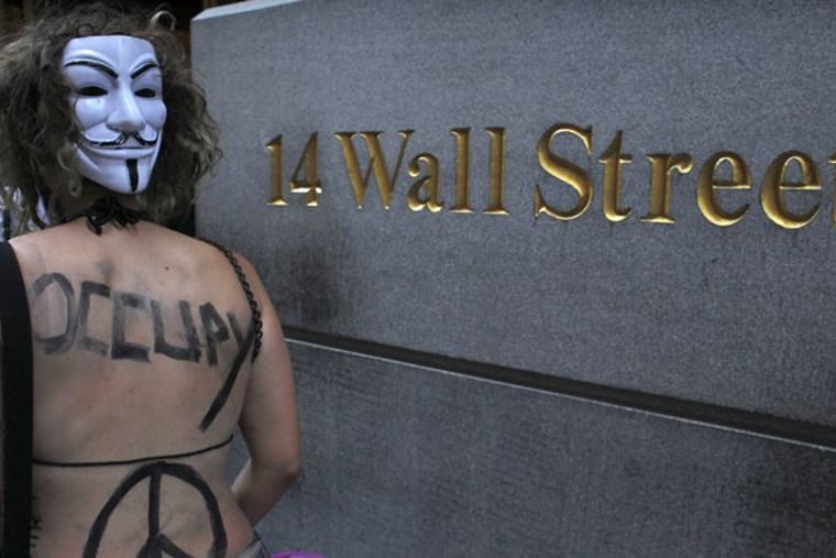 Anonymous-Mitglieder nehmen 2011 an Protesten der Occupy-Wall-Street-Bewegung teil und bloggen über die Aktionen.